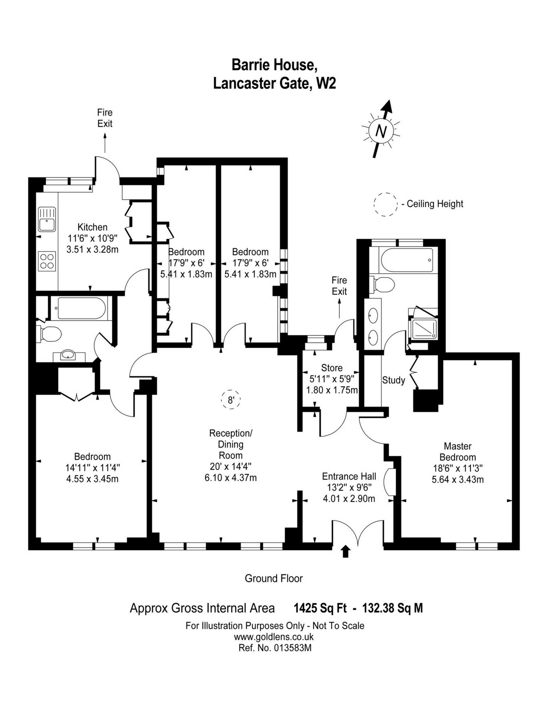 A spacious ground floor apartment opposite Hyde Park with its own entrance. With almost 1500sq ft of lateral accommodation this family sized flat has four bedrooms , two bathrooms , large south facing reception , a modern fitted kitchen , good storage and study. Barrie House is a prestigious , 24hour portered block which forms the southwest corner of Lancaster Gate and is just 250m ( approx ) from Lancaster Gate Underground Station ( Central Line ) with fast connections to Westfield Shopping Centre ( 6 mins ) , the West End and City .The Heathrow Express from Paddington Station is just under 1km away ( approx ). So just open your own front door and stroll into Kensington Gardens and discover the Serpentine Gallery, the Round Pond , the enchanting childrens playground and Kensington Palace former home of the late Princess Diana.